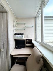 Кухня правильной формы 8,7 м2 с выходом на балкон с зоной кладовки.