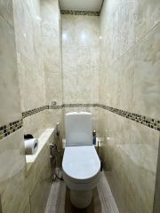 Санузел раздельный в стильной кафельной плитке .