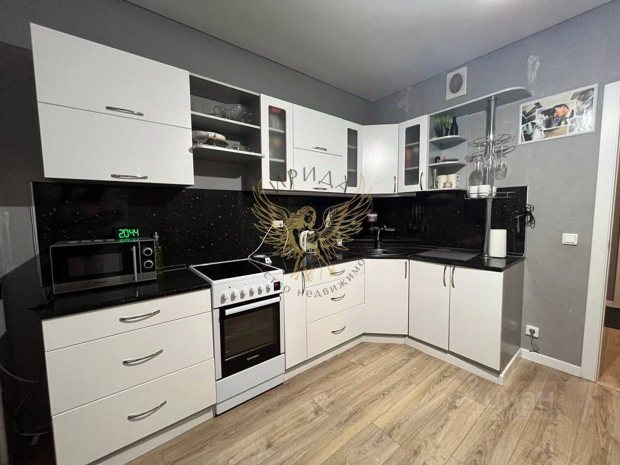 Новым владельцам остаётся кухонный гарнитур. Также можно оставить мебель и технику по согласованию (за отдельную плату).