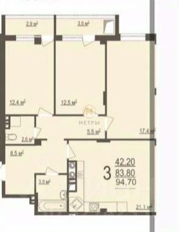 • Комнаты 17 кв.м , 12 кв.м и 12 кв.м | их двух комнат есть выходы на остекленные лоджии
