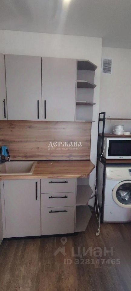 В квартире будущим собственникам остается :кухонный гарнитур ,холодильник, диван, микроволновая печь, шкафы