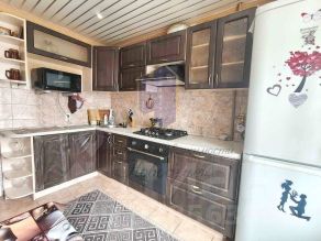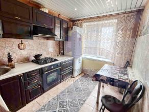 Квартира в хорошем, жилом состоянии, установлены окна ПВХ, межкомнатные двери в едином стиле. Санузел раздельный (стены облицованы плиткой до потолка), установлены счётчики на воду и электричество. Пол на кухне выложен практичной плиткой, в комнатах постелен ламинат. Входная дверь металлическая. Чистый подъезд.