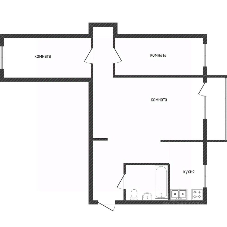 Планировка: кухня-гостиная ~ 40 м2, две спальни по 14 м2, детская комната 15 м2, раздельный сан. узел, гардеробная и два балкона.