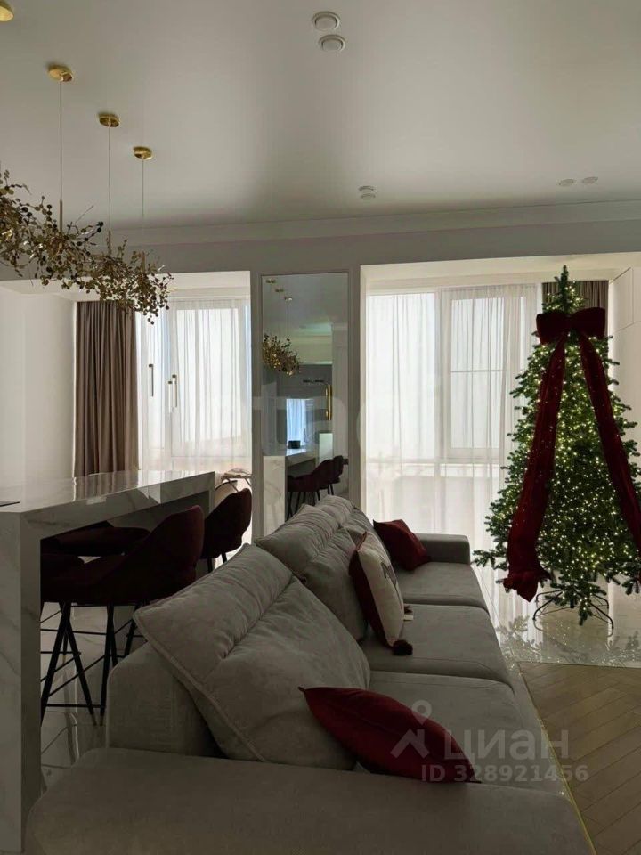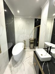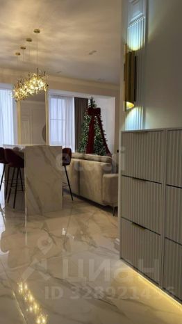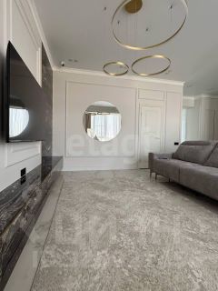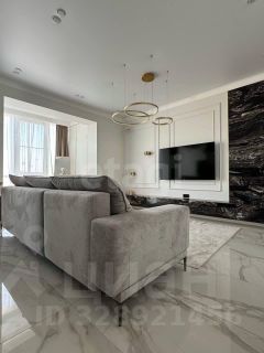 Выполнен дизайнерский дорогой и качественный ремонт, сан. узел и пол в коридоре, гостиной уложены крупноформатным керамогранитом под мрамор и оникс. В квартире высокие трёхметровые потолки, индивидуальное отопление, по всей площади квартиры установлен тёплый пол. Интерьерный свет, все стены окрашены английской краской Little green и немецкой Flugger.