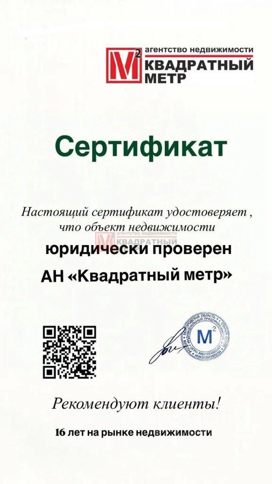 Работаем честно и прозрачно 16 лет на рынке недвижимости!