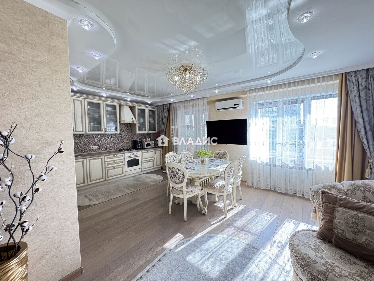 Квартира расположена на третьем этаже девятиэтажного дома, построенного в 2009 году. Высота потолков в 2,8 метра создаёт ощущение простора, а качественный ремонт позволит новым владельцам сразу заселиться без дополнительных вложений. Общая площадь квартиры составляет 82,6 квадратных метров, из которых 45,9 квадратных метров приходится на жилую площадь, а 31,7 квадратных метров — на кухню-гостиную.