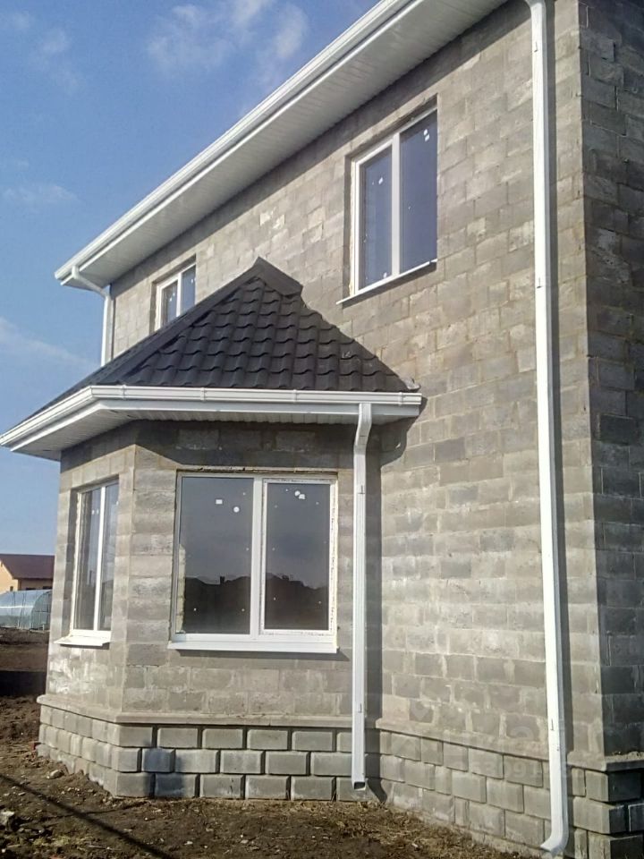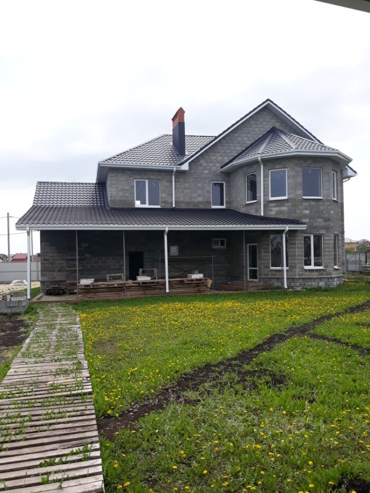 Строили для себя .Дом газосиликат +утеплитель+шлако-бетон стены 50см.Дом без внутренней отделки ,вода,электричество подведены.Первый этаж оштукатурен.Гараж большой на две машины ,двое ворот.Под гаражом подвал,сухой.На участке постройка 150м²разделена на три зоны ,Хозяйственная,летняя кухня,баня и чердак мансарда над всей постройкой.Плодоносящий сад,капитальная теплица,курятник.