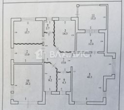 Планировка: 3 спальни (13м2, 14м2 и 15м2), гостиная 40м2, кухня 12м2 с выходом на остеклённую террасу (зона барбекю) 15м2, два санузла, просторные коридоры, гараж 26м2. Также есть отдельно стоящий домик для отдыха - баня!