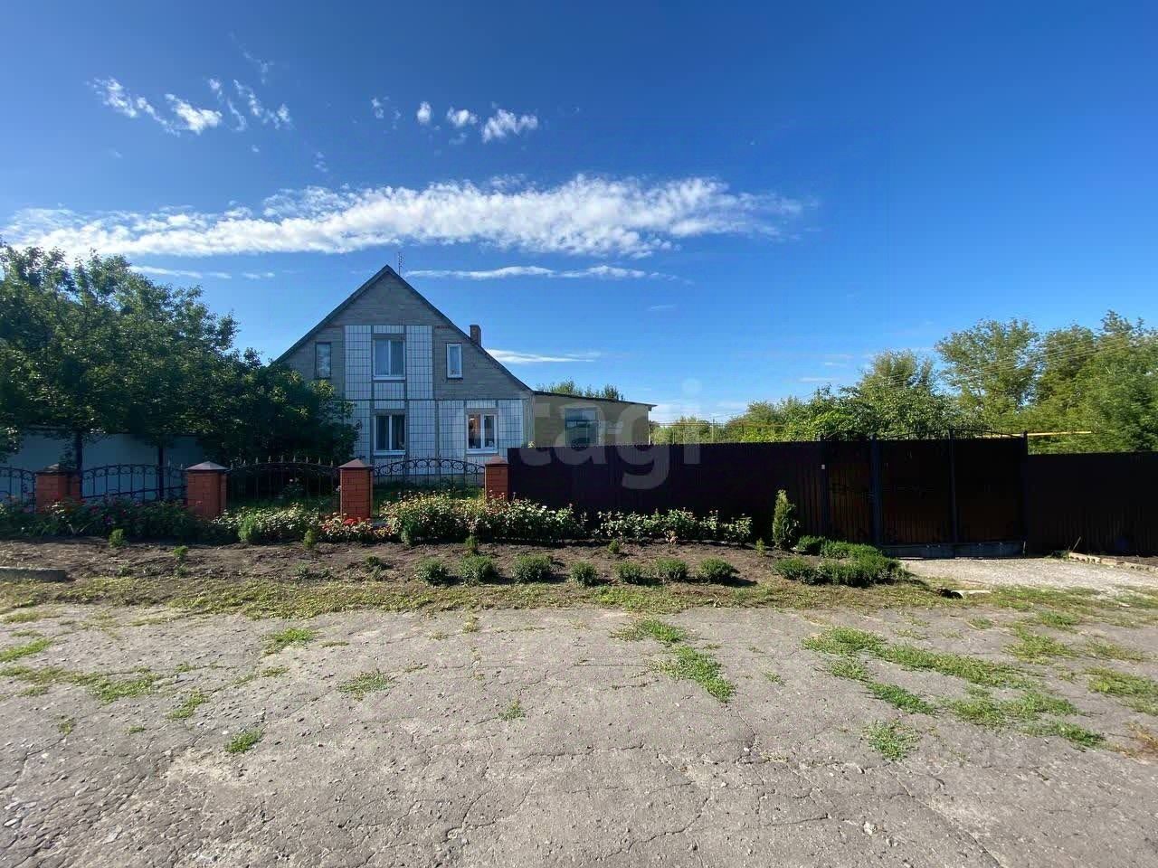 Инфраструктура развита — в шаговой доступности школа, детский сад, магазины и остановка общественного транспорта, что делает проживание здесь удобным для повседневной жизни. Участок площадью 23 сотки ухожен: двор украшен розами и фруктовыми деревьями, есть место для отдыха и хозяйственных нужд. На территории расположены гараж, просторное подвальное помещение и вольер для собаки. Подъезд к дому асфальтированный, периметр огорожен забором из металлопрофиля.