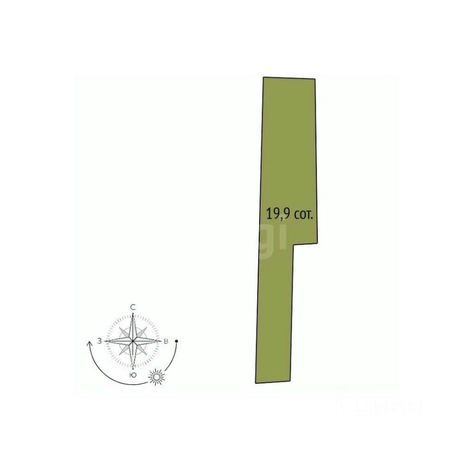 Продается ровный земельный участок 19,9 сотки прямоугольной удлиненной формы.