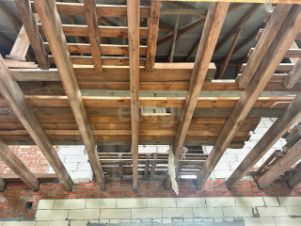 Дом стоит на свайном фундаменте, что обеспечивает надёжность и устойчивость.