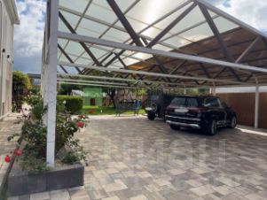 Есть тёплый гараж, а также во дворе парковка с навесом (на 4-5 авто).