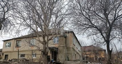 Дом крепкий, двухуровневый из-за перепада рельефа местности. Построен основательно, сложен из кирпича. Крыша покрыта шифером, окна - пластиковые.