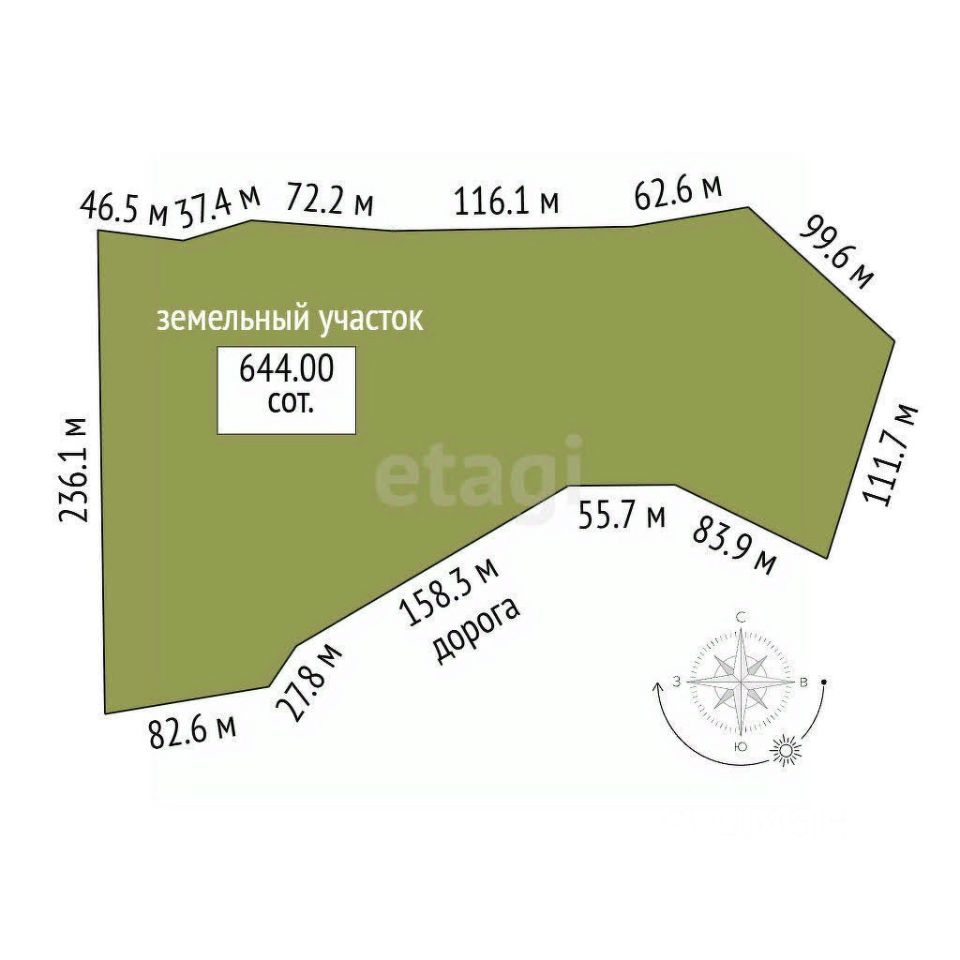 Участок относительно ровный, живописно выглядит и подходит для строительства базы отдыха или коттеджа вашей мечты.