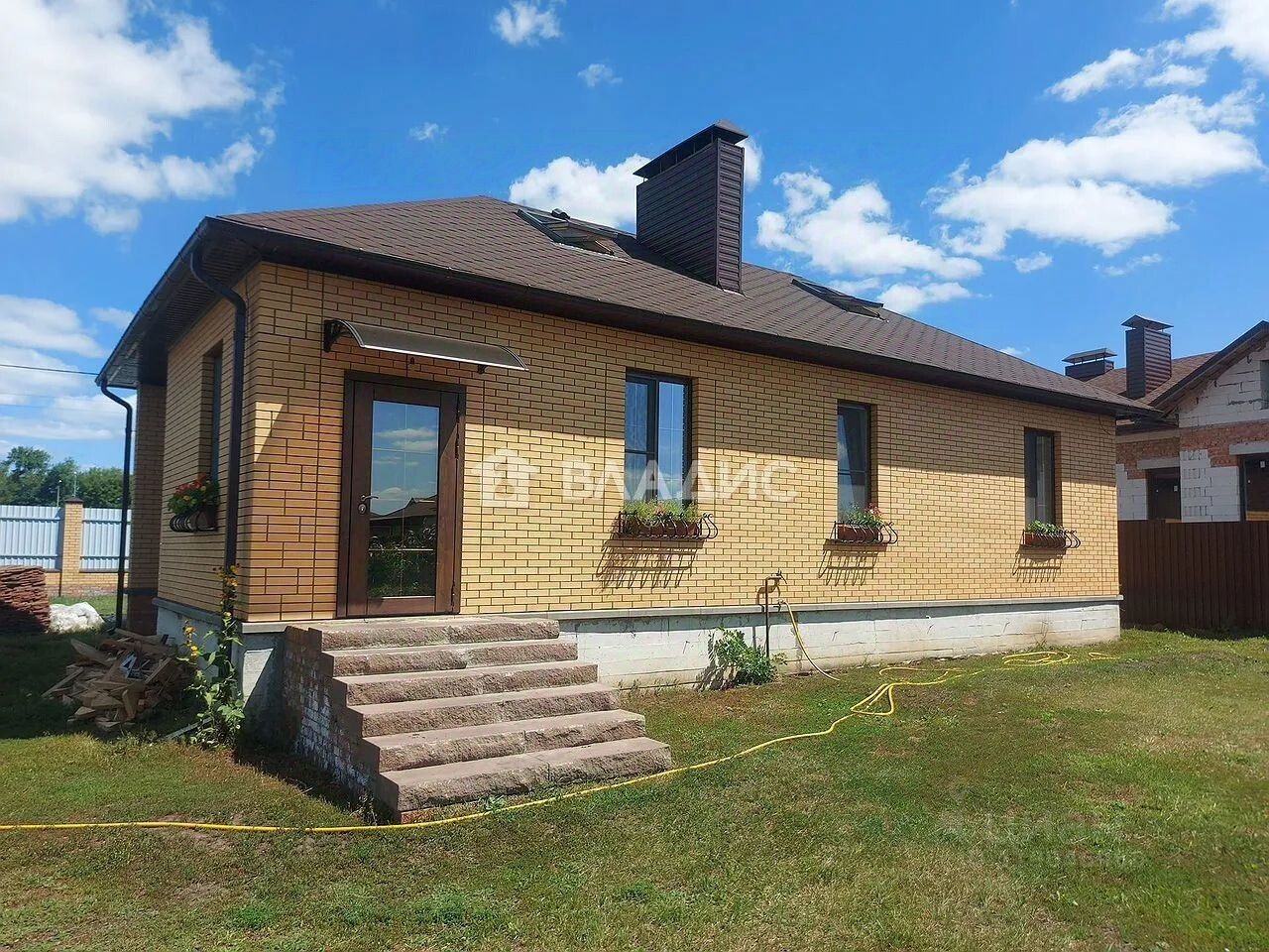 Участок площадью 20 соток предоставляет множество возможностей для обустройства сада, зоны отдыха или огорода. Дом построен из кирпича, перекрытия — деревянные, кровля покрыта металлочерепицей.