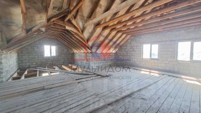 Продается 2-х этажный коттедж мансардного типа в ИЖС Научный центр-2. На первом этаже две комнаты, гостиная и кухня, просторный холл, мансарда свободной планировки. Газ, канализация, вода проходят по границе участка. Электричество есть.