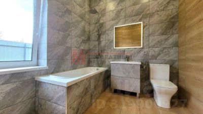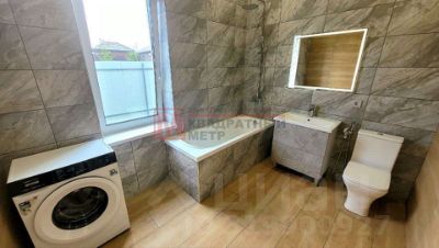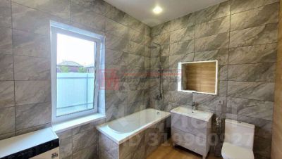 Полностью покрыт керамогранитом, новая стиральная машина, стильный санфаянс и зеркало с подсветкой.