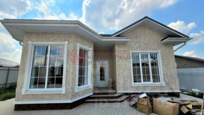 Дом облицован двухслойным короедом и покрашен фасадной краской.