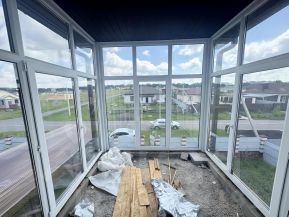 На цокольном этаже котельная, свободное пространство для мастерской или зоны отдыха, бытовка и выход на задний двор. На первом этаже: кухня, санузел, три комнаты - в некоторых комнатах выровнены уже стены под обои, по всему первому этажу ТЕПЛЫЙ ПОЛ. На втором этаже комната свободной планировки с выходом на остекленный балкон. При желании можно разделить на несколько комнат.