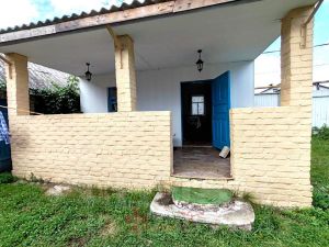 Дом построен из дубовых бревен и обложен кирпичом. Крыша покрыта шифером. В доме две просторные комнаты, веранда и помещение где оборудована печка. Отопление электрическое. Пластиковые окна.