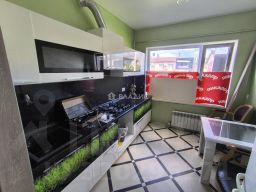 Построенный в 2014 году из качественных блочных материалов, этот двухэтажный таунхаус идеально подходит для круглогодичного проживания. Общая площадь составляет 64 кв. м. Дом имеет две комнаты , гостиную и кухню площадью 10 кв. м. Высота потолков — 2,8 м, что создаёт ощущение простора.