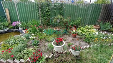 Участок в собственности. Во дворе разбиты клумбы, грядки с овощами, посажены плодово-ягодные деревья. Из хозяйственных построек имеется: гараж, подвал, времянка с большим навесом и зоной отдыха.