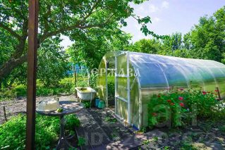 Земельный участок площадью 11.4 сотки, ровный, ухоженный сад и овощные грядки. На участке большой навес, гараж, жилая времянка, много хозяйственных построек и сухой подвал.