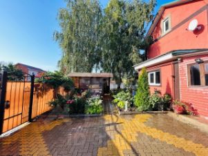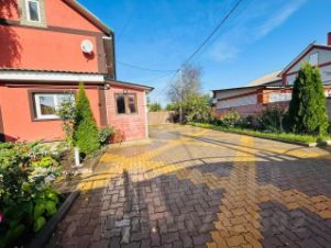 Дом, состоящий из двух этажей, построенный в 2010 году, представляет собой половину дуплекса с продуманной планировкой и качественным ремонтом. Общая площадь участка составляет 366 кв.м., территория благоустроена в стиле ухоженного сада с цветниками и зелеными насаждениями, создающими приятную атмосферу для отдыха. В глубине участка расположена уютная беседка с мебелью, где можно проводить время в теплые дни. Дом оборудован газовым отоплением, центральным водоснабжением и современным септиком, что обеспечивает комфортное проживание круглый год. Для удобства жильцов подключен высокоскоростной Wi-Fi. Въезд на территорию осуществляется через автоматические ворота, а выложенная плиткой дорожка ведет к парадному входу. На участке предусмотрена парковка, что избавляет от необходимости искать место для автомобиля.