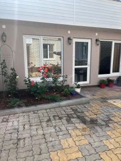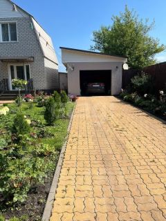 Земельный участок площадью 12,9 соток полностью огорожен, благоустроен и вымощен плиткой. На территории расположены гараж, банкетный зал и кирпичные хозяйственные постройки, что расширяет возможности использования участка. Ландшафтный дизайн включает декоративные цветы и кустарники, создавая уютную атмосферу.