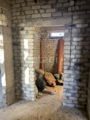 Дом кирпичный, фундамент ленточный залит разом. Глубина 1,20, ширина 40 см. Цоколь-блок бетонный, фундаментный.