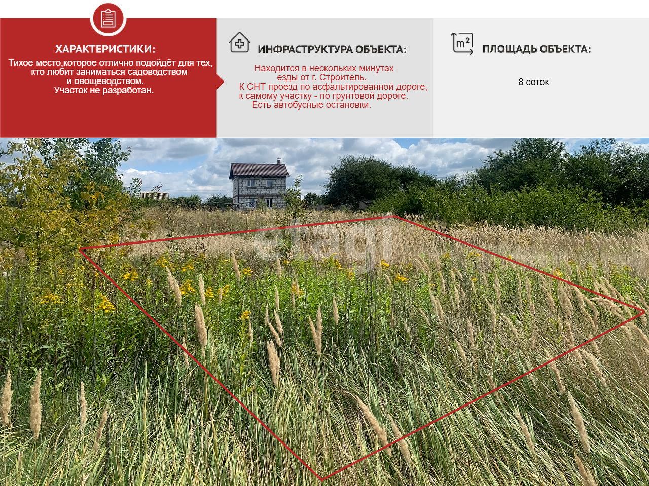 В продаже участок в СНТ "Урожай-2" площадью 8 соток. Находится в нескольких минутах езды от г. Строитель. К СНТ проезд по асфальтированной дороге, к самому участку - по грунтовой дороге. Есть автобусные остановки.