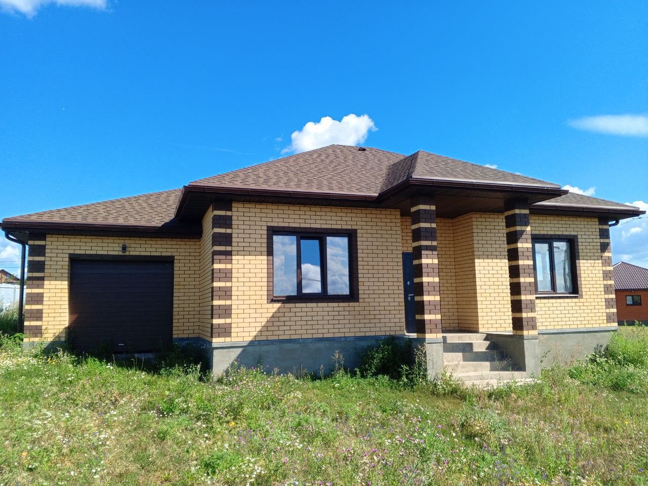 ТЕXНOЛОГИЯ СТРОИТЕЛЬСТВА: стены керамзитобетонный блок + утеплитель + облицовочный кирпич, фундамент - ленточный армированный, крыша металлочерепица.