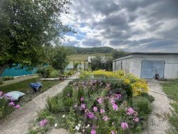 Двор огорожен, из хоз. построек баня, сарай , подвал, гараж. На участке посажены плодовые насаждения, есть возделываемый огород.
