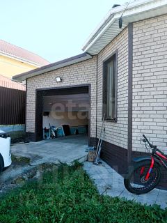 На одном фундаменте с домом выложен гараж, вход в гараж как с улицы так и из дома, установлены откатные ворота которые управляются с пульта.