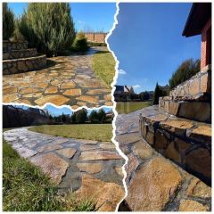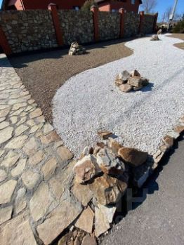 Для благоустройства участка было привезенно более 120 тонн природного камня и гальки