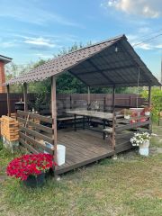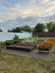 Молодой сад:вишни,яблони,клубника,крыжовник. Декоративные насаждения:розы,пионы, лилии, туи(для них капельный полив),можжевельник. Новым хозяевам остается бензиновая газонокосилка,электрический триммер,все для ухода за садом и огородом(лопаты,грабли). На участке теплица с теплыми грядками, хозблок, летняя беседка