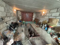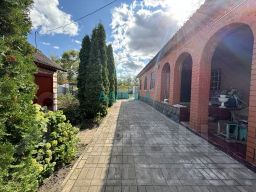Участок большой, в собственности. Двор полностью огорожен, дорожки выложены тротуарной плиткой. Высажены цветы, туи и фруктовые деревья. Огород возделывается. Из хозяйственных построек имеется два гаража, большой подвал, несколько сараев для ведения подсобного хозяйства, вольер для собаки.