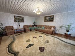 Продам большой, крепкий дом общей площадью 320 кв. метров на участке 15.5 соток. Дом блочный, обложен кирпичом. Планировка первого этажа: просторная прихожая, большая гостиная, спальная комната, столовая, кухня, раздельный санузел, кладовая, котельная. На второй этаж ведет удобная лестница из натурального дерева. Планировка второго этажа: просторный холл, три спальные комнаты, раздельный санузел и небольшая комната свободного назначения. Коммуникации: отапливается напольным газовым котлом, вода из собственной скважины, канализация индивидуальная, горячая вода-газовая колонка. В доме при ремонте использовались натуральные материалы, на полу паркет и плитка. В доме при продаже остается мебель-можно зайти и жить.