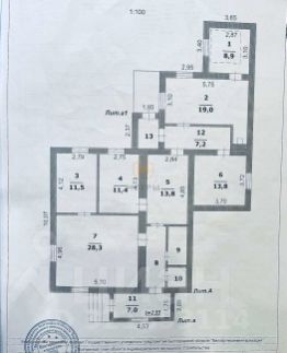 - 5 просторных светлых комнат(28.3 м2, 13.8 м2, 11.5 м2, 11.4 м2 и 8.9 м2),