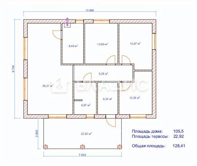 Дом построен в 2025 году из качественного кирпича, что гарантирует его долговечность и надёжность. Общая площадь дома составляет 128,41 кв. м, из которых 39 кв. м — жилая площадь. Три комнаты (13 + 14 + 12 кв. м) предоставляют достаточно пространства для всей семьи. Высота потолков 2,85 м создаёт ощущение простора и свободы.