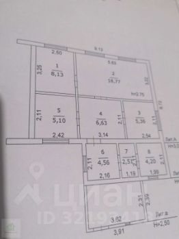 Комнаты: 3 изолированные — 18.77 кв.м, 8.13 кв.м и 5.1 кв.м.