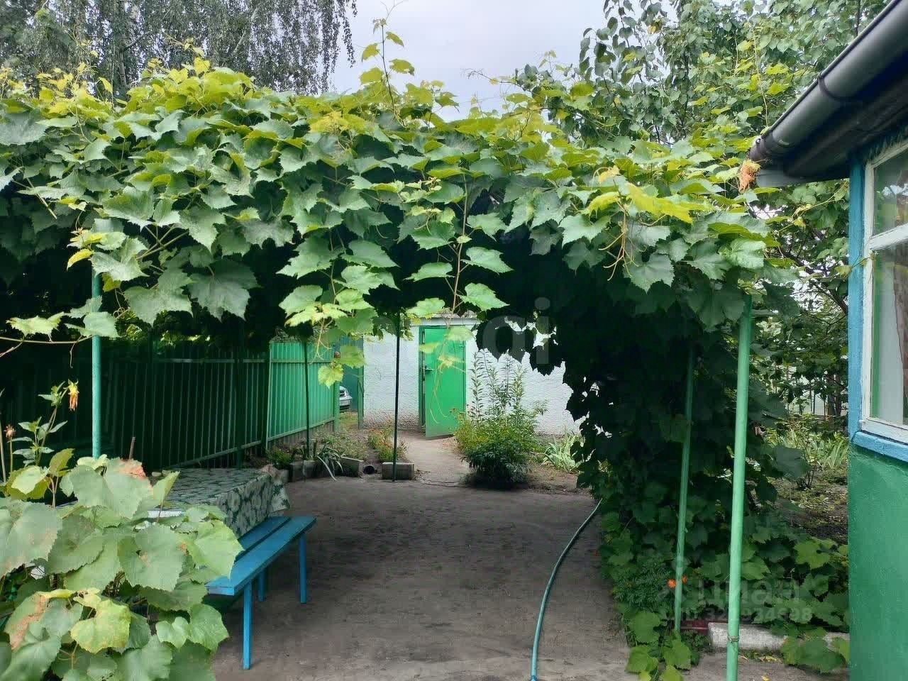 На участке хозпостройки, гараж, скважина, полив, насаждения.