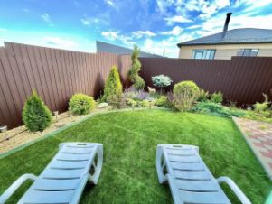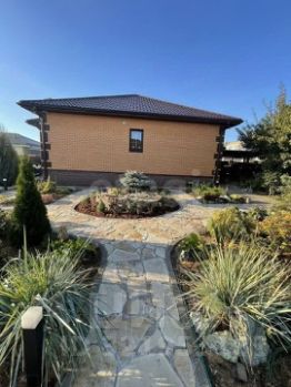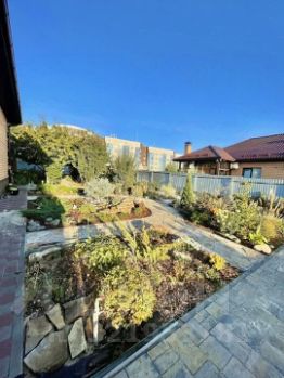 Во дворе выполнен красивый ландшафтный дизайн , куда вложено много средств, сил и любви! Много плодовых деревьев, ягодных кустарников абрикос, грецкий орех, вишня, черешня, груша, яблони, слива, шелковица, алыча, ирга, жимолость, малина, клубника, ежевика, голубика, черника и т.д.