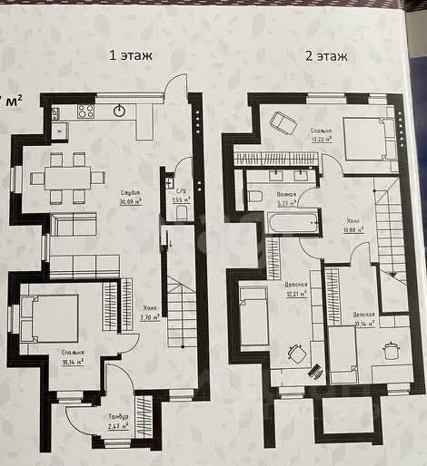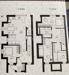 На 2-ом этаже: 3 просторные спальни, ванная комната, коридор.