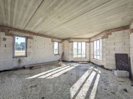 О доме: • Черновая отделка — возможность создать интерьер под себя • Индивидуальный проект с высотой потолков 3 м • Планировка: большая гостиная-кухня + 3 спальни + раздельный санузел • Прочные ж/б плиты перекрытия между этажами • Большая терраса перед входом