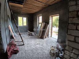 Ремонт на 1 этаже: пол-стяжка, стены отштукатурены по маякам, установлены хорошие стеклопакеты, входная дверь. Остается сделать только финишную отделку на ваш вкус.