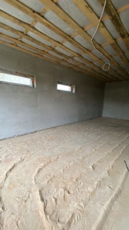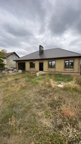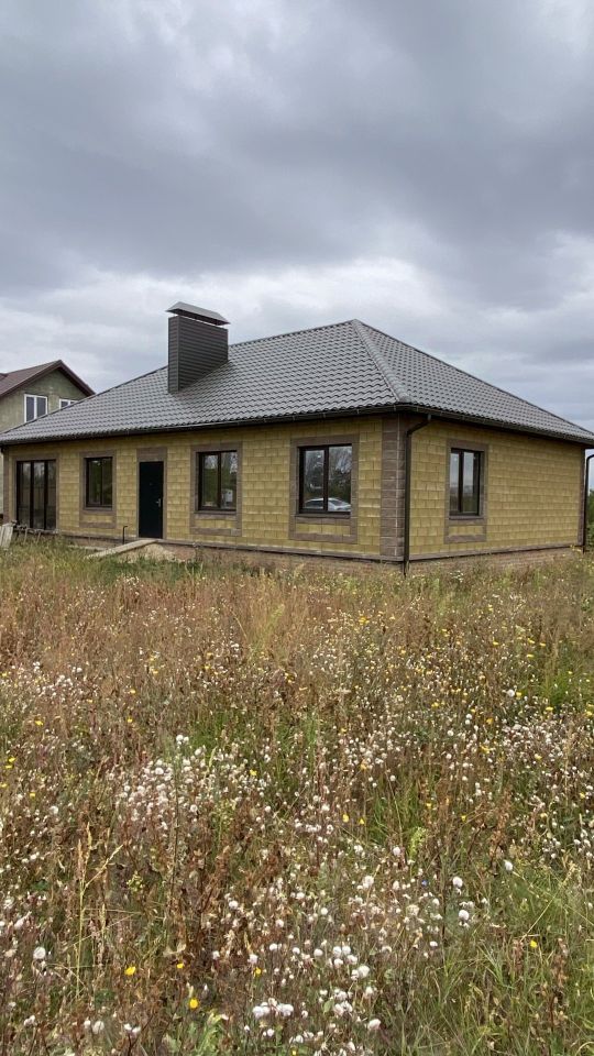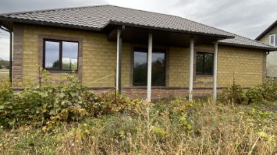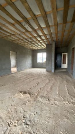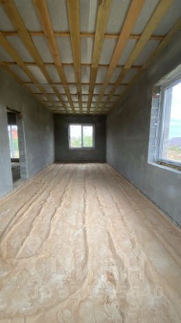 Дом построен из керамзитобетонных блоков, крыша выполнена из металлочерепицы, окна установлены ПВХ с ламинацией под дерево, стены оштукатурены, на полу черновая стяжка.