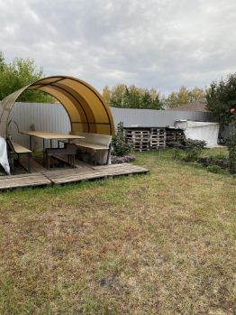 Участок ухожен, всё обработано, есть плодовые деревья — яблоня, груша, черешня, персик. Весной всё цветёт, летом — свои фрукты. Частично засеяно газонной травой, высажены туи.