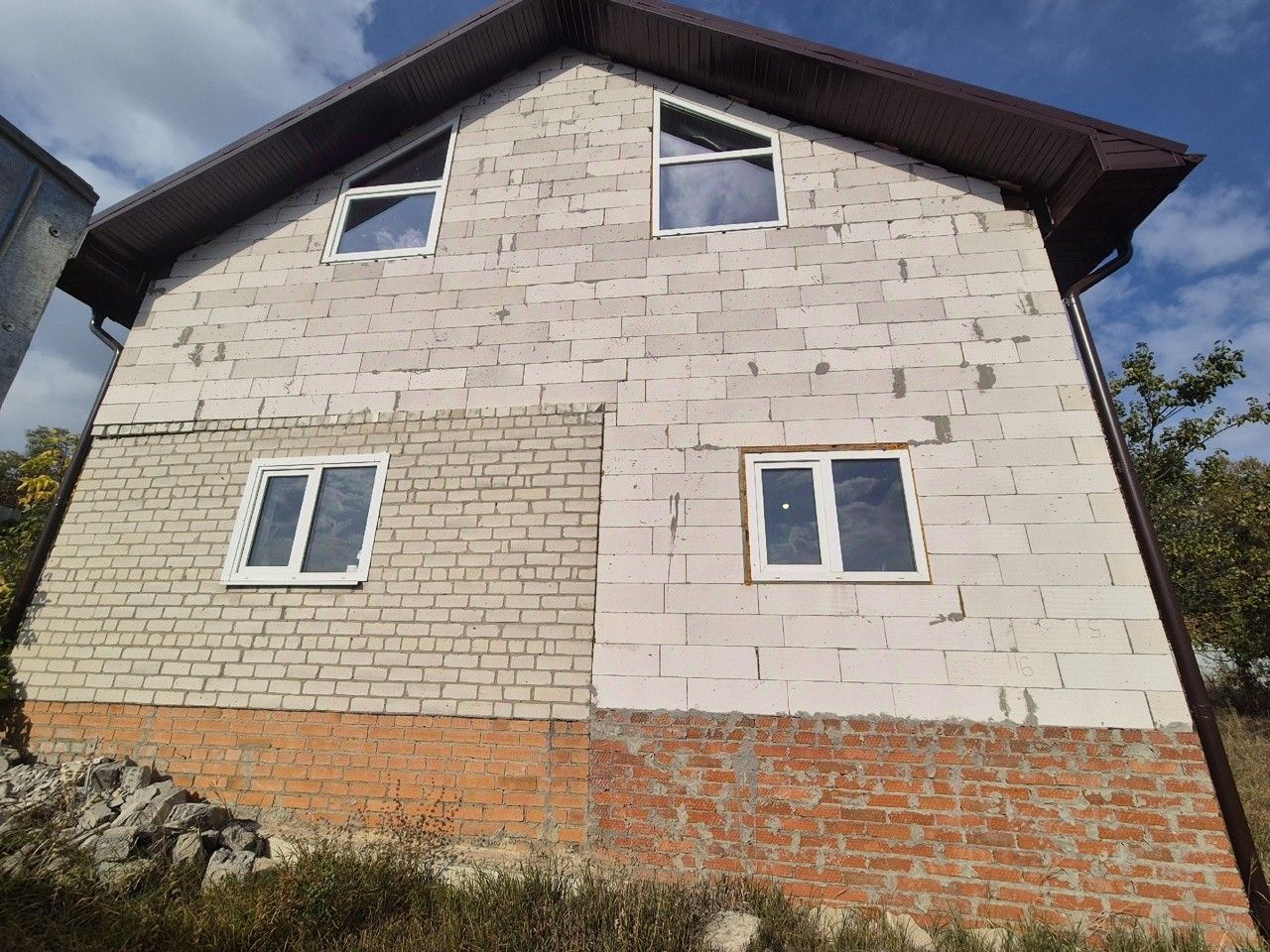 Дом двухэтажный под черновую самоотделку. На первом этаже по планировке предусматривалась большая кухня-столовая, гостиная, 1 небольшая комната и санузел. На втором этаже есть место под гардеробную, а так же по желанию нового собственника можно предусмотреть либо 1 большую комнату, либо 2 изолированных.