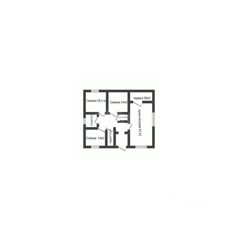 Планировка дома отличается практичностью и продуманностью: три спальни, гардеробная, просторная кухня-гостиная с выходом на террасу и два санузла. Высота потолков 2,8 метра дополнена системой вентиляции, выведенной из каждой комнаты. Объект построен в соответствии со строительными нормативами из качественных материалов, что обеспечивает высокую энергоэффективность и комфортный микроклимат круглый год.